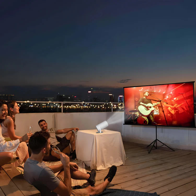 Gjør ethvert rom om til et oppslukende projeksjonsrom. Momount™ omdefinerer konseptet bærbar underholdning.