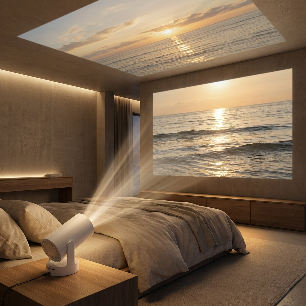 Takket være den 180° svingbare basen og den smarte bildekorrigeringen kan du vippe, snu og projisere på praktisk talt alle overflater uten behov for stativ eller feste.